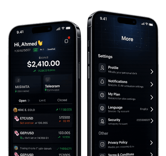 Create your account, connect Telegram and MT4/MT5, then decide how signals should be filtered and executed.